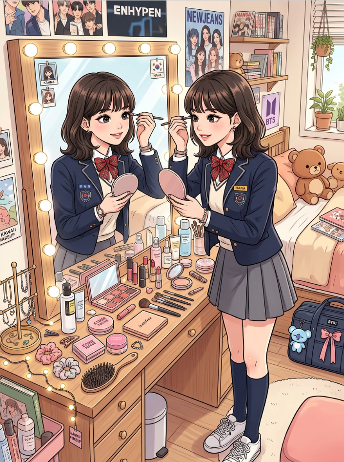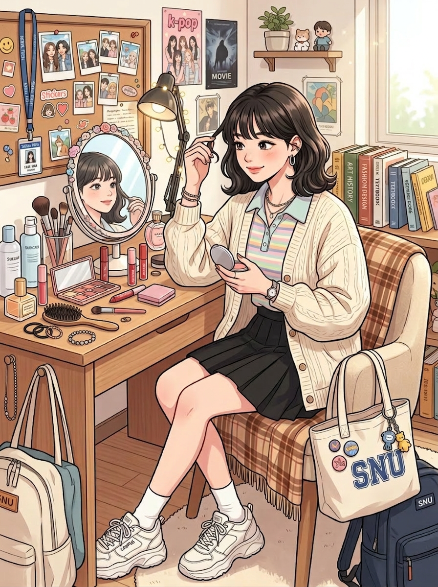 그녀는 항상 외모에 신경을 쓴다.