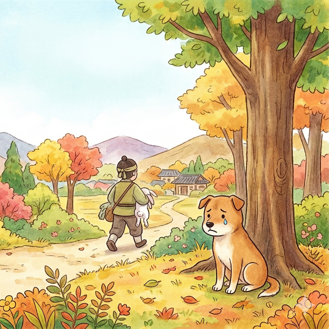 ウサギが死ぬと、それを捕まえた猟犬も不要になり、主人に煮て食べられてしまう。