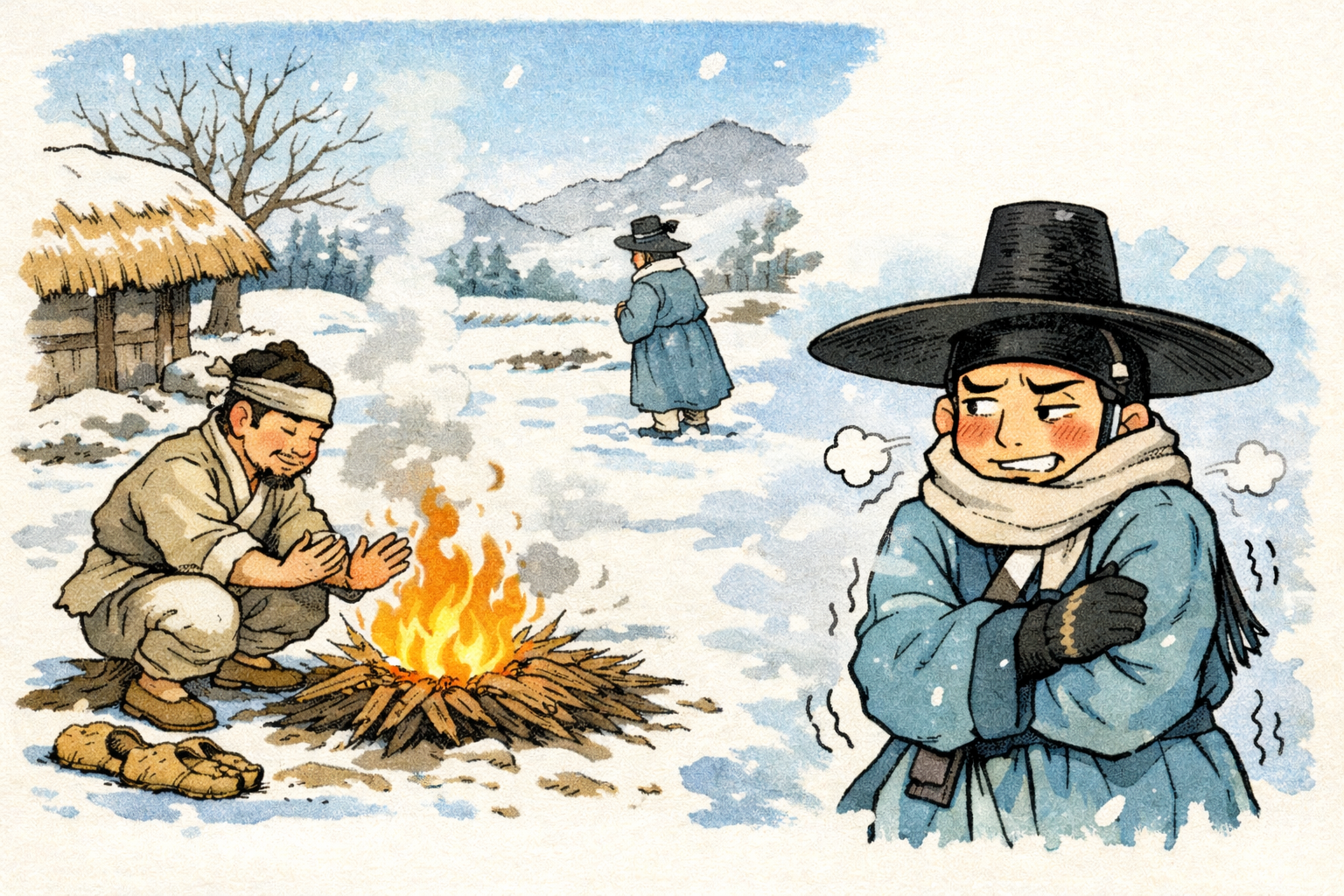 このことわざは、体面や誇りを重んじる人は、どれほど寒く厳しい状況でも、自分の品位を損なう行動は取らないという意味です。つまり、実利よりも品格や自尊心を重視する韓国人の価値観をよく表しています。