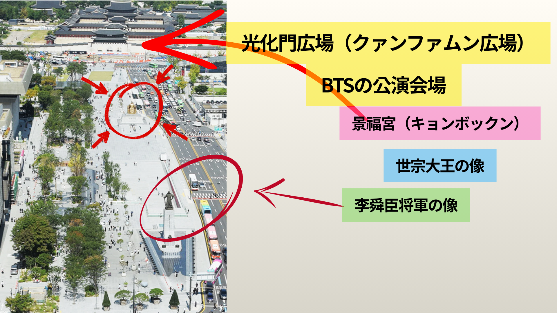今回の公演には約 26万人 近い観客が集まると予想されており、光化門一帯は公演準備と安全対策のため非常に慌ただしい状況となっている。警察 約6,500人 が現場に配置される予定であり、公演当日の 3月21日(土)午後9時から翌22日午前6時まで、光化門から市庁までの区間は交通規制が行われる。
